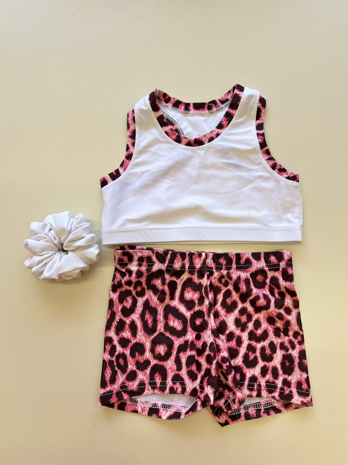 Σετ τοπ και σορτσάκι που συνοδεύεται με ένα scrunchie για τα μαλλιά με το αντίστοιχο print.Το τοπ είναι με στρογγυλή λαιμόκοψη και αθλητική πλάτη. Το σoρτσάκι είναι ψηλόμεσο και έχει λάστιχο λάστιχο στη μέση. Κατασκευασμένα στην Ελλάδα από ύφασμα αθλητικών προδιαγραφών και συμπίεσης που απομακρύνει τον ιδρώτα. Έχει άνετη εφαρμογή και στήριξη στη διάρκεια της προπόνησης.