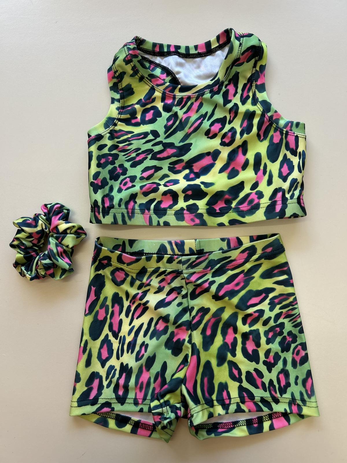 Σετ τοπ και σορτσάκι που συνοδεύεται με ένα scrunchie για τα μαλλιά με το αντίστοιχο print.Το τοπ είναι με στρογγυλή λαιμόκοψη και αθλητική πλάτη. Το σoρτσάκι είναι ψηλόμεσο και έχει λάστιχο λάστιχο στη μέση. Κατασκευασμένα στην Ελλάδα από ύφασμα αθλητικών προδιαγραφών και συμπίεσης που απομακρύνει τον ιδρώτα. Έχει άνετη εφαρμογή και στήριξη στη διάρκεια της προπόνησης.