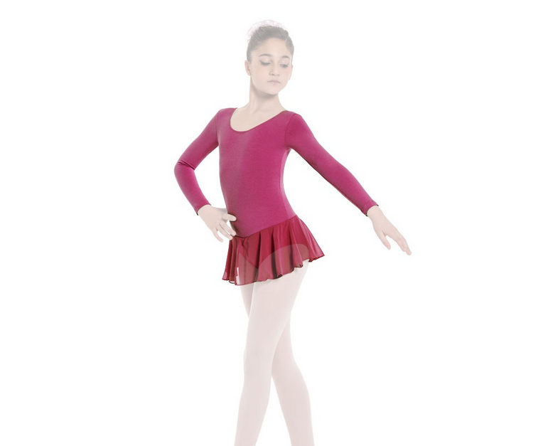 Παιδικό κορμάκι μπαλέτου SHEDDO με μακρύ μανίκι, μεσαίο κόψιμο στον λαιμό και ενσωματωμένη φούστα. Σχεδιασμένο για άνεση και ελαστικότητα από απαλό βαμβάκι. Το βαμβάκι είναι υποαλλεργικό και αναπνέει το δέρμα κάτω από το ύφασμα. Σύνθεση Βαμβάκι 90% Eλαστίνη 10%