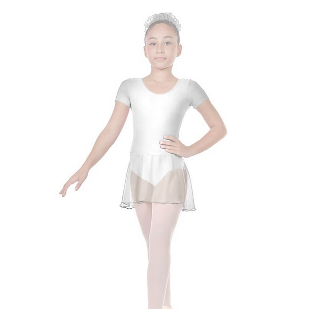 Παιδικό κορμάκι μπαλέτου SHEDDO με κοντό μανίκι και φούστα από μουσελίνα. Σχεδιασμένο για άνεση και ελαστικότητα από απαλό βαμβάκι. Το βαμβάκι είναι υποαλλεργικό και αναπνέει το δέρμα κάτω από το ύφασμα. Σύνθεση Βαμβάκι 90% Ελαστίνη 10%