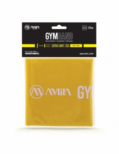 Λάστιχο αντίστασης AMILA GymBand κορδέλα μήκους 1,2 m. Είναι κατασκευασμένο από φυσικό Latex και διακρίνεται για την ιδιαίτερη αντοχή του ακόμα και σε επαγγελματικό επίπεδο ενώ χρησιμοποιείται από πάρα πολλούς αθλητές και γυμναστές. Διαστάσεις 120x45 cm