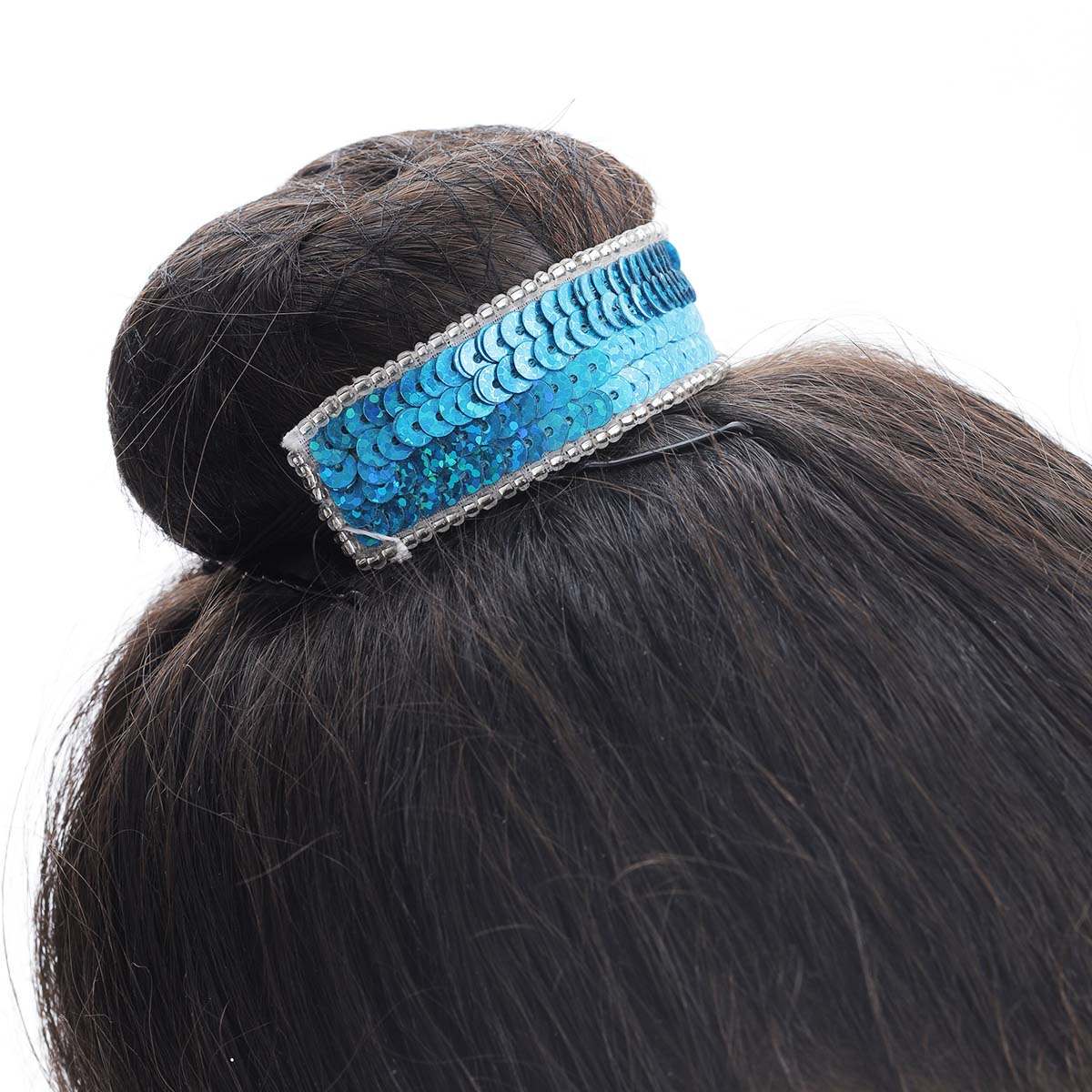 Λαστιχάκι μαλλιών για σινιόν με μια ορθογώνια λωρίδα από πούλιες και χάντρες. Μαύρο λάστιχο
